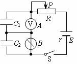3.如下图所示,电路中电源的电动势为E,内阻为r,A为电压表,内阻为10kΩ,B为静电计;两个电容器的电容分别为C1和C2,将电键S合上一段时间后,下列说法中正确的是