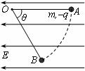 8.如下图所示,在场强大小为E的匀强电场中,一根不可伸长的绝缘细线一端拴一个质量为m电荷量为q的带负电小球,另一端固定在O点。把小球拉到使细线水平的位置A,然后将小球由静止释放,小球沿弧线运动到细线与水平成θ=60°的位置B时速度为零。以下说法正确的是