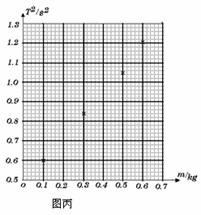 (3)根据表格记录的实验数据,在如图丙所示的坐标纸上,以m(为滑块上所加砝码的质量)为横坐标,T2为纵坐标,作出T2―m图象.图中已描出4个点,请根据表中数据描出另外两点,并完成T2―m图象.