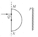 3.如下图所示,半圆形玻璃砖的半径为R,直径为MN,一细束白光从Q点垂直于直径MN的方向射入半圆形玻璃砖,从玻璃砖的圆弧面射出后,打到光屏P上,得到由红到紫的彩色光带。已知