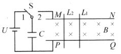 19.如下图所示,电源的电动势为U,电容器的电容为C,S是单刀双掷开关,MN、PQ是两根位于同一水平面的平行光滑导轨,它们的电阻可以忽略不计,两导轨间距为