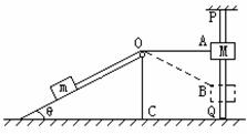 =300的固定的光滑斜面上,而穿过竖直杆PQ的物块M可沿杆无摩擦地下滑,物块的质量关系为M=