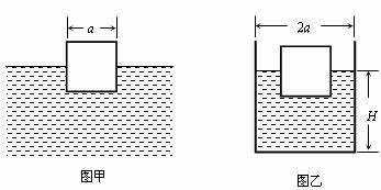 (1)面积很大的水池,水面上浮着一质量为m、边长为a的正方体木块.开始时木块静止,有一半没入水中,如图甲所示.现用一个向下的力F1将木块缓慢地压入水中,求从开始到木块刚好完全没入水中这一过程,力F1所做的功.
