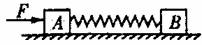 8.如图所示,在光滑的水平面上,用轻绳连接质量相等的两个物体A和B,开始弹簧处于自然伸长状态,恒力F推物体A,则从开始到弹簧第一次被压缩最短的过程中,关于物体的速度和加速度,下列说法正确的是 ( )