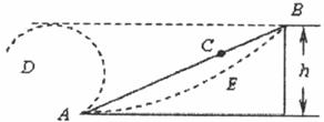 B.若把斜面AB变成曲面AEB,物体沿此曲面上升仍能到达
