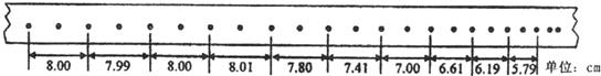 在上述过程中,打点计时器在纸带上所打的部分点迹如下图所示(已知纸带左端与小车相连)。请分析纸带数据,回答下列问题:
