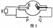 4.如图3是伦琴射线管的结构示意图。电源E给灯丝K加热,从而发射出热电子,热电子在K、A间的强电场作用下高速向对阴极A飞去。电子流打到A极表面,激发出高频电磁波,这就是X射线。下列说法中正确的有 ( )