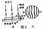 7.如图6,甲是用干涉法检查某块厚玻璃的上表面是否平整的装置,检查中所观察到的干涉条纹如图乙所示,则 ( )