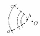 6.一带电粒子射入一固定在O点的点电荷的电场中,粒子运动轨迹如下图中虚线abc所示,图中实线是同心圆弧,表示电场的等势面。不计重力,可以判断