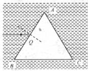 2.用很薄的玻璃片制作而成的一个空气三棱镜,横截面为等边三角形,浸没在水中(如下图)。一束由两种单色光混合而成的光线与BC边平行,从水中入射到AB边的Q点,进入空气之后,都改变了传播方向