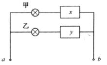 接电压为U的直流电源时,无论电源的正极与哪一个接线柱相连,甲灯均能正常发光,乙灯完全不亮。当