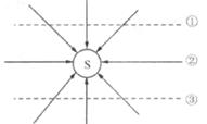 6.假设地面附近空中有一S极磁单极子,在竖直平面内的磁感线,如下图所示。一带电小球正在该磁单极子附近的某个平面做匀速圆周运动,图中①②③表示三个不同的水平面,则该小球所在平面可能是