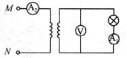 10.如下图所示,为用一原、副线圈匝数比为2┱1的理想变压器给灯泡供电电路,电表均为理想的,所有连接导线电阻不计,当MN两端输入