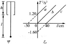 (未知)且开口向下的小筒中(单摆的下部分露于筒外),如下图甲所示,将悬线拉离平衡位置一个小角度后由静止释放,设单摆振动过程中悬线不会碰到筒壁,如果本实验的长度测量工具只能测量出筒的下端口到摆球球心之距离