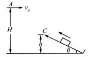 的带有小孔的塑料块沿斜面滑到最高点C时速度恰为零,此时与从A点水平射出的弹丸相碰,弹丸沿着斜面方向进入塑料块中,并立即与塑料块有相同的速度。已知A点和C点距地面的高度分别为: