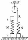 15.图中a、b、c为三个物块,M、N为两个轻质弹簧,R为跨过光滑定滑轮的轻绳,它们连接如图并处于平衡状态。( )
