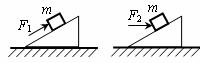 20.如图所示,分别用两个恒力F1和F2,先后两次将质量为m的物体从静止开始沿着同一个粗糙的固定斜面由底端推到顶端。第一次力F1的方向沿斜面向上,第二次力F2的方向沿水平向右,两次所用的时间相同。在这两个过程中 ( )