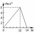 14.(11分)在水平地面上有一质量为2kg的物体,物体在水平拉力F的作用下由静止开始运动,10s后拉力大小减为F/3,该物体的速度随时间t的变化规律如图所示.g取10m/s2,求: