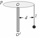 15.(11分)某游乐场中有一种“空中飞椅”的游乐设施,其基本装置是将绳子上端固定在转盘上,下端连接座椅,人坐在座椅上随着转盘旋转而在空中飞旋,若将人看成质点,则可简化为如图所示的物理模型.其中P为处于水平面内的转盘,可绕竖直转轴OO/转动.设轻绳长l=10m,人的质量为m=60kg,转盘不动时人和转轴间的距离为d=4m,现让转盘慢慢加速运动,经过一段时间转速保持稳定,此时人和转轴间的距离为D=10m,且保持不变,不计空气阻力,绳子不可伸长,取g=10m/s2.求: