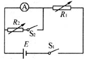 如果采用下图所示的电路测定电流表A的内阻并且要想得到较高的精确度,那么从以上备用的器材中,可变电阻R1应选用 ,可变电阻R2应选用 ___ ,电源E应选用 。
