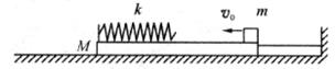 17.如下图所示,质量为M的长滑块静止在光滑水平地面上,左端固定一劲度系数为