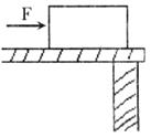 ,受水平向右的力F的作用匀速运动,从物体到边缘开始,到物体下落为止,在此过程中物体保持匀速运动,下列说法正确的是