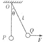 的轻绳悬挂于O点,小球在水平力F作用下,从最低点P缓慢地移到Q点,如下图所示,则在此过程中