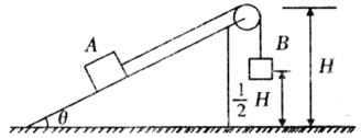 的位置上,释放两物块后,A沿斜面无摩擦地上滑,B沿斜面的竖直边下落,若物块A恰好能达到斜面的顶点,试求