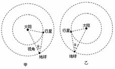 16.(16分)地球和某行星在同一轨道平面内同向绕太阳做匀速圆周运动。地球的轨道半径为R=1.50×