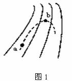 1.如图1所示,实线是一个电场中的电场线,虚线是一个负检验电荷在这个电场中的轨迹,若电荷是从a处运动到b处,以下判断正确的是:( )