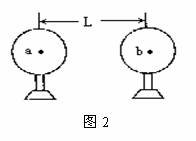 3.如图2所示,两个质量均为m的完全相同的金属球壳a与b,其壳层的厚度和质量分布均匀,将它们固定于绝缘支座上,两球心间的距离为L,为球半径的3倍。若使它们带上等量异种电荷,使其电量的绝对值均为Q,那么,a、b两球之间的万有引力F引库仑力F库分别为:( )