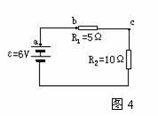 6.如图4所示电路的三根导线中有一根是断的。电源、电阻器R1、R2及另外两根导线都是好的。为了查出断导线,某学生想先用万用表的红表笔连接在电源的正极a,再将黑表笔分别连接在电阻器R1的b端和R2的c端,并观察万用表指针的示数。在下列选挡中,符合操作规程的是:( )