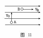 12.如图11所示,质量为m,带电量为q的粒子,以初速度v0,从A点竖直向上射入真空中的沿水平方向的匀强电场中,粒子通过电场中B点时,速率vB=2v0,方向与电场的方向一致,则A,B两点的电势差为:( )