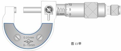 14.(6分)某学生用螺旋测微器在测定某一金属杆的直径时,测得的结果如图13甲所示,则该金属杆的直径d= mm。另一位学生用游标卡尺上标有20等分刻度的游标卡