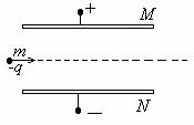 18.如图所示,M、N为两块水平放置的平行金属板,板长为l,板间相距为d,两板间加有电压,且M板电势高于N板。今有一质量为m、电荷量为-q的小球(视为质点)平行于两金属板、并沿两板中央直线以速度v水平飞入两板间,
