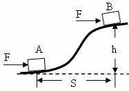 13、质量为 m的小车在水平恒力F推动下,从山坡底部A处由静止起运动至高为h的坡顶B,获得速度为