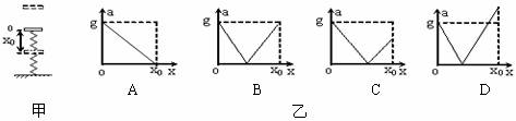 8.图甲所示,一根轻弹簧竖直直立在水平地面上,下端固定。在弹簧的正上方有一个物块,物块从高处自由下落到弹簧上端O处,之后,将弹簧压缩了x0时,物块的速度变为零.从物块与弹簧接触开始,到物块下落至最低点的过程中,物块加速度的大小随下降的位移x变化的图象可能是: ( )