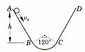 为两个对称斜面,其上部足够长,下部分分别与一个光滑的圆弧面的两端相切,圆弧圆心角为120°,半径