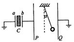 12.如图所示,C为中间插有电介质的电容器,a和b为其两极板;a板接地;P和Q为两竖直放置的平行金属板,在两板间用绝缘线悬挂一带电小球;P板与b板用导线相连,Q板接地。开始时悬线静止在竖直方向,在b板带电后,悬线偏转了角度a。在以下方法中,能使悬线的偏角a变大的是:( )