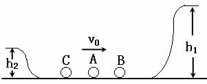 19.(20分)如图所示,A、B、C三个小球位于同一水平面上,他们大小相同,B、C质量相等,都是A球质量的一半,B、C两球开始静止,A球以速度v0向右运动,要使A球能分别将B、C两球撞上高度分别为h1=