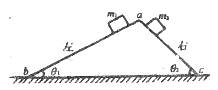 14.如图所示,在粗糙水平面上有一个三角形木块abc,在它的两个粗糙斜面上分别放两个质量为m1和m2的木块,m1>m2,己知三角形木块和两物体都是静止的,则粗糙水平面对三角形术块: