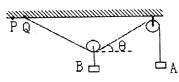 6.如图所示,A、B两物体的质量分别为mA、mB,且mA>mB,整个系统处于静止状态,滑轮的质量和一切摩擦均不计,如果绳一段由Q点缓慢地向左移到P点,整个系统重新平衡后,物体A的高度和两滑轮间绳与水平方向的夹角θ变化情况是 ( )