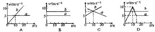 12.两辆游戏赛车a、b在两条平行的直车道上形式,t=0时两车都在同一计时处,此时比赛开始,它们的四次比赛中v―t图象如图所示,哪些图对应的比赛中,有一辆赛车追上另一 辆 ( )