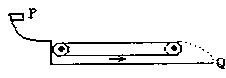 14.物体从光滑曲面上的P点自由滑下,通过粗糙的静止水平传送带以后落到地面上的Q点,若传送带的皮带轮沿逆时针方向转动起来,使传送带随之运动,如图所示,再把物块放到P点自由滑下则 ( )