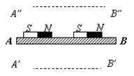乙:如果将AB从原来位置突然竖直向下平移(平板与磁铁之间始终接触),并使之停在位置A’B’处,结果发现两条形磁铁也吸在了一起。