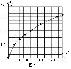 (1)根据上表的数据和图丙中图像的形状,可猜想v和h之间的关系为 ;