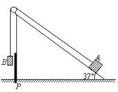 15.(10分)倾角为37°的斜面体靠在固定的竖直挡板P的一侧,一根轻绳跨过固定在斜面顶端的定滑轮,绳的一端与质量为mA=
