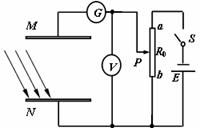 16.(10分)如图所示是利用光电效应现象测定金属极限频率的实验原理图,其中电源电动势为E,内阻为r,R0的总电阻为4r,两块平行金属板相距为d,当N受频率为υ的紫外线照射后,将发射沿不同方向运动的光电子,形成电流,从而引起电流计的指针偏转,若闭合开关S,调节R0逐渐增大极板间电压,可以发现电流逐渐减小。当电压表示数为U时,电流恰好为零。(已知普朗克常量h、电子电荷量e、电子质量m、光速为c)则(1)金属板N的极限频率为多大?