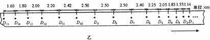 13.(15分)很多人都认为“力越小速度就越小”,为了检验这个观点是否正确,兴趣小组的同学设计了这样的实验方案:在水平桌面上放一小木块,小木块后端与穿过打点计时器的纸带相连,前端通过定滑轮与不可伸长的细线相连接,细线上不等间距地挂了五个钩码,其中第四个、第五个钩码之间的距离最大。起初木块停在靠近打点计时器的位置,第五个钩码到地面的距离小于木块到定滑轮的距离,如下图甲所示。启动打点计时器,木块在钩码的牵引下,由静止开始运动,所有钩码落地后,木块会继续运动一段距离。打点计时器使用的交流电频率为50 Hz。下图乙是实验得到的从第一个钩码落地到所有钩码落地后木块连续运动一段距离的一段纸带,纸带运动方向如箭头所示。(g取
