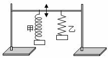 1. 如图所示,把两个弹簧振子悬挂在同一支架上,己知甲弹簧振子的固有频率为8Hz,乙弹簧振子的固有频率为72Hz,当支架在受到竖直方向且频率为9Hz的驱动力作用下做受迫振动时,两个弹簧振子的振动情况是 ( )